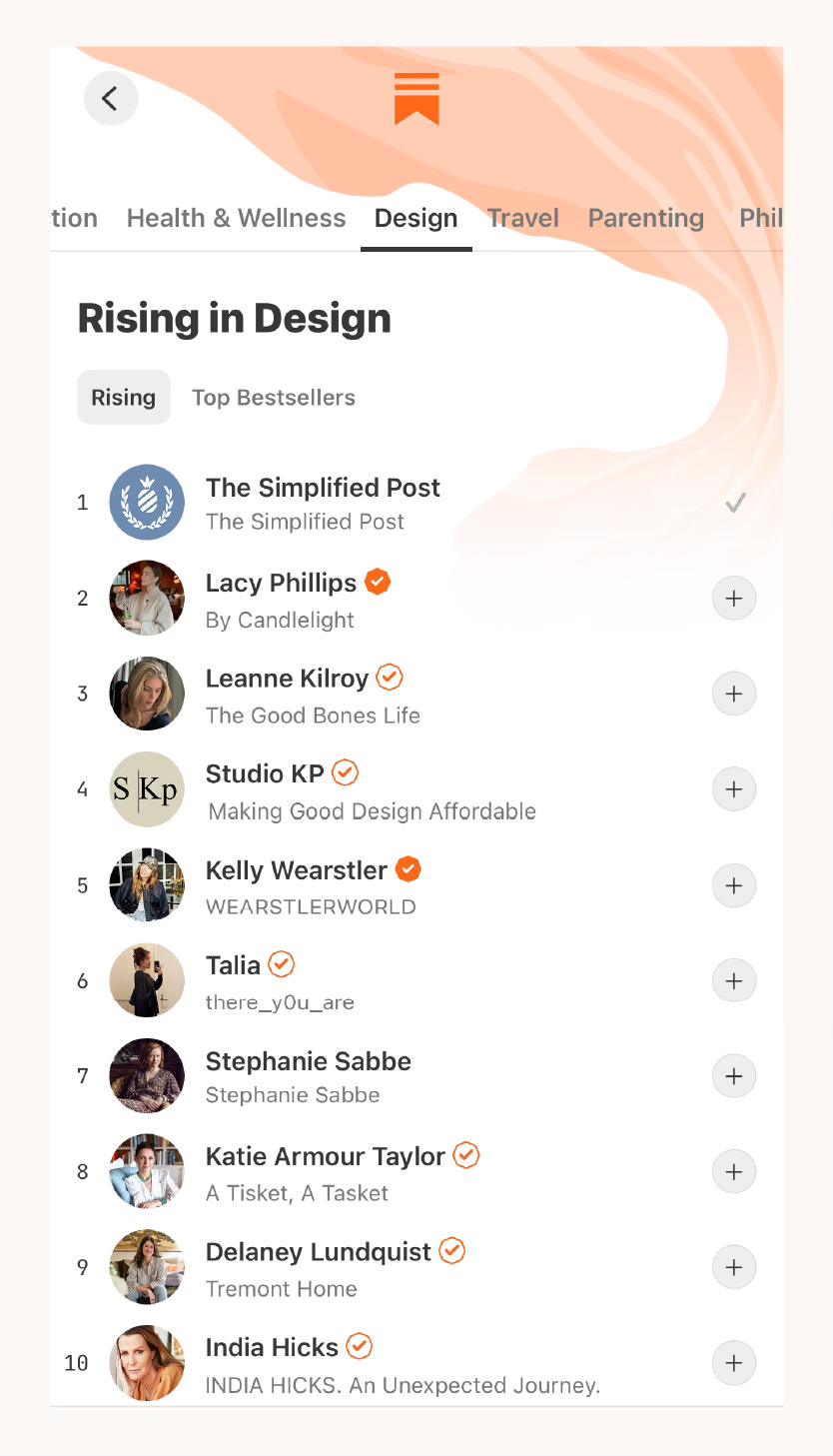 Substack has been such a fun, fun project for our team to be a resource for our community. We hit #1 on the Rising in Design list, and #23 top bestseller in that category!