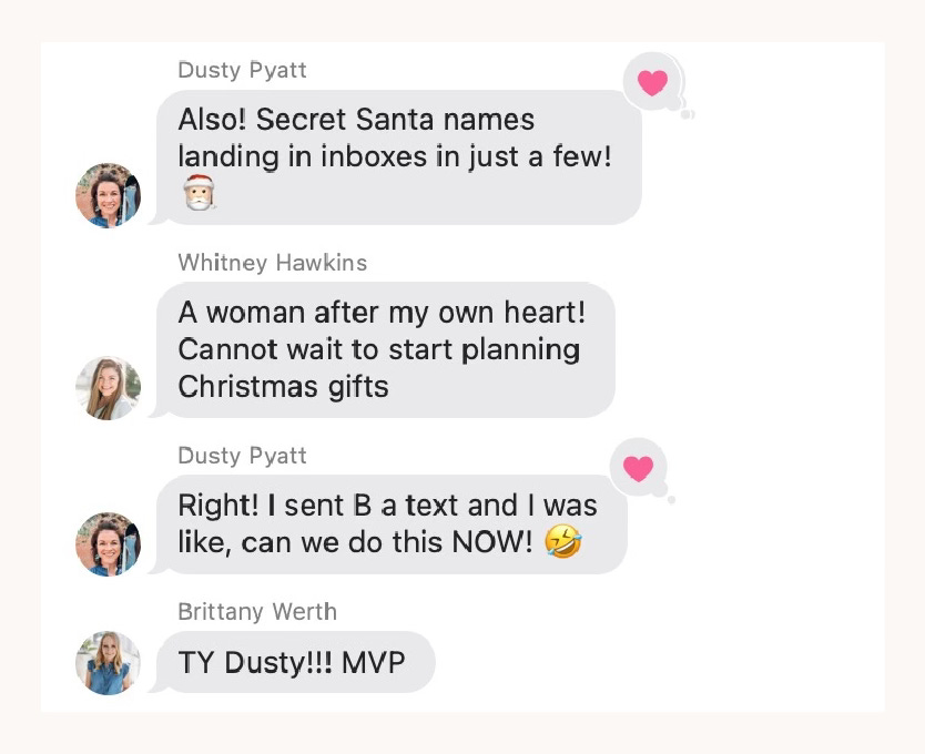 We take Secret Santa very seriously on our team, which is probably surprising no one. Dusty sent out our names way in advance so we can be sure to have the perfect gift for our drawn names. Let the shopping begin!