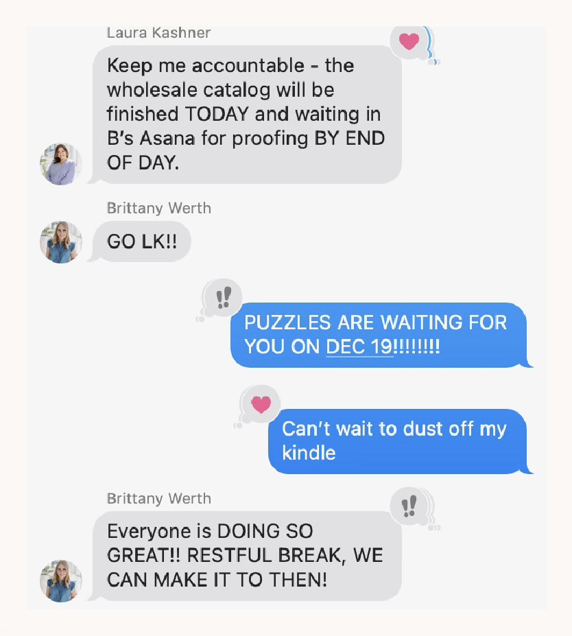 Brittany: Don’t procrastinate (do as I say, not as I do). Get started in October or November—spreads out the spending so you aren’t super crunched in the weeks leading up to the holidays, and easier on your mental load. Also—fewer, more thoughtful gifts!
