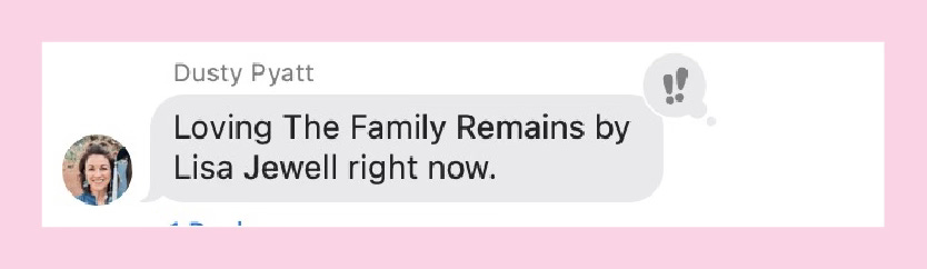 Dusty is reading The Family Remains, and highly recommends. What are you reading right now?