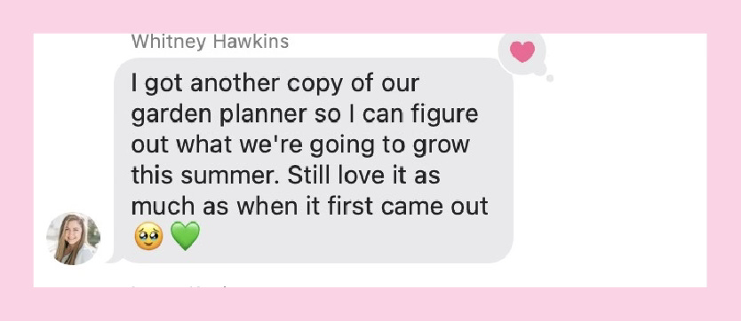 Whitney is working on her garden with a fresh Garden Planner. We already can’t wait to see the beauty she grows!
