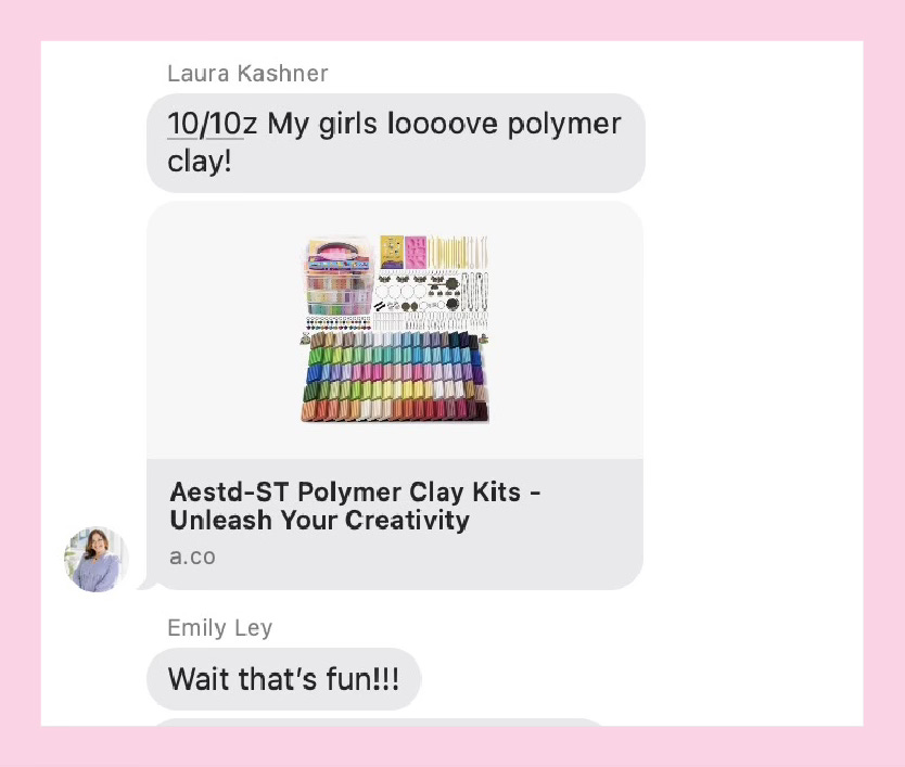Laura’s girls love this clay kit. Keeping them creative and busy for a long time! This would make a great birthday party gift for kids.